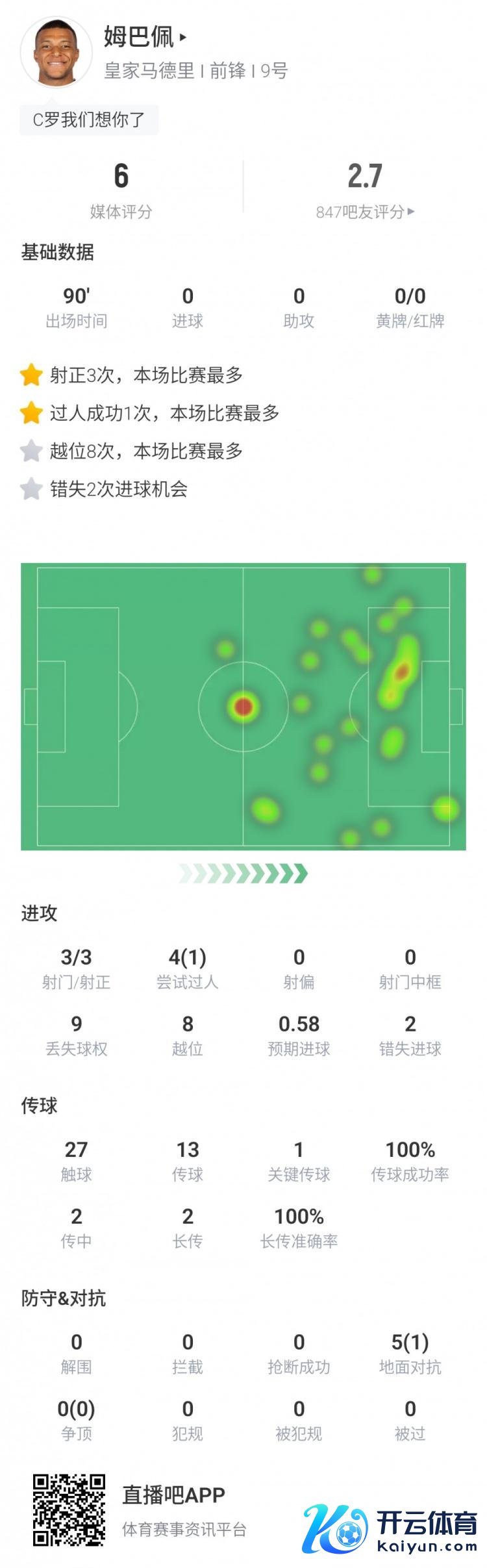 在皇马0-4大北巴萨的比赛中,姆巴佩出现了多达8次越位,一些培植构成员觉得姆巴佩莫得展现出有余的专注度,因为球队赛前成心就巴萨的高位防地进行了测验。