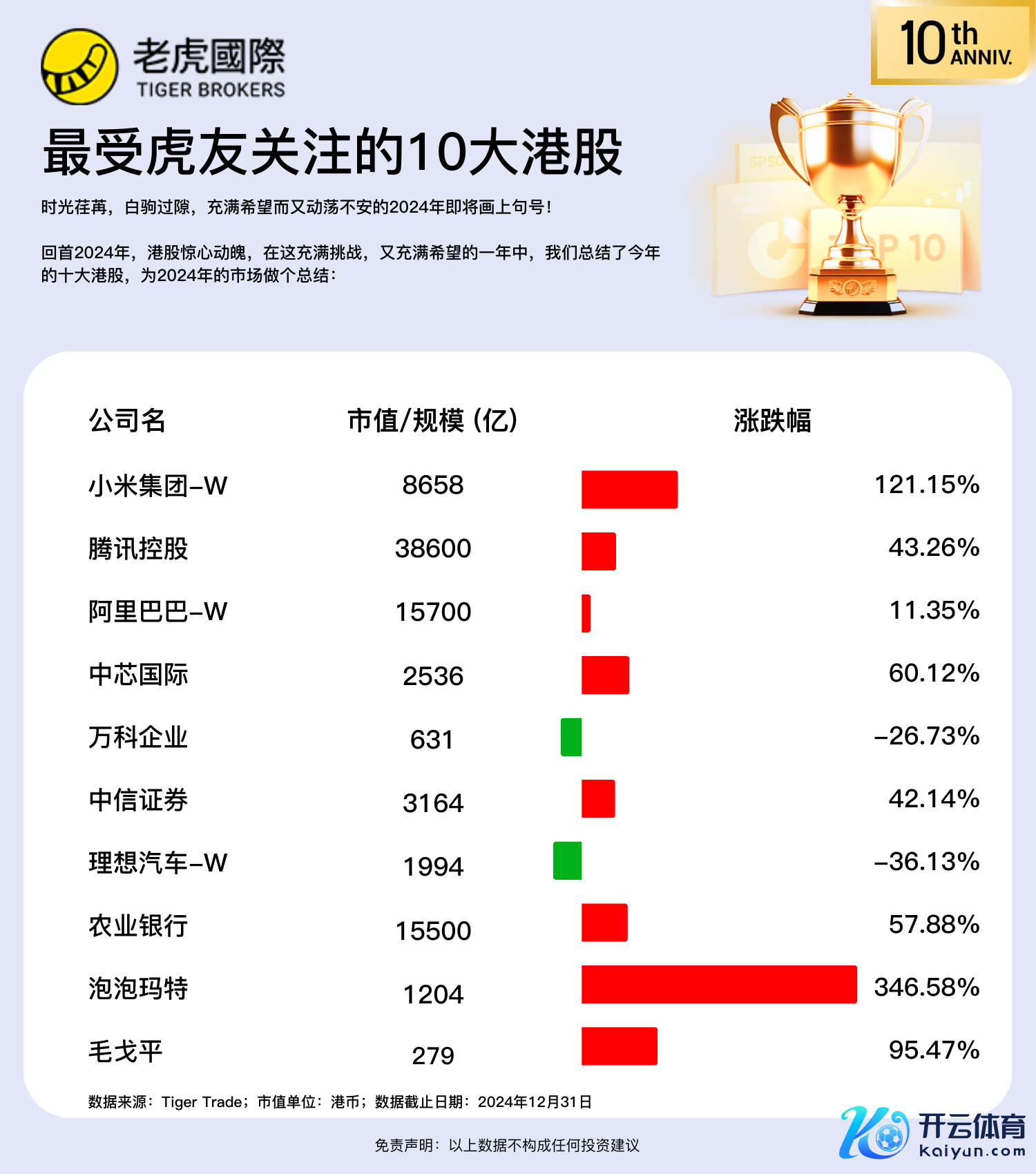 总结2024年,港股胆战心摇,在这充满挑战,又充满但愿的一年中,咱们总结了本年的十大港股,为2024年的商场作念个总结: