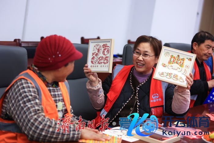 紧接着,剪纸艺术让工友们目前一亮。一张张红纸,在剪刀下幻化出口头分辨的祥瑞图案和幸福字符,工友们挑选满意的图案,亲手尝试剪纸,体验着传统艺术的乐趣和建树。