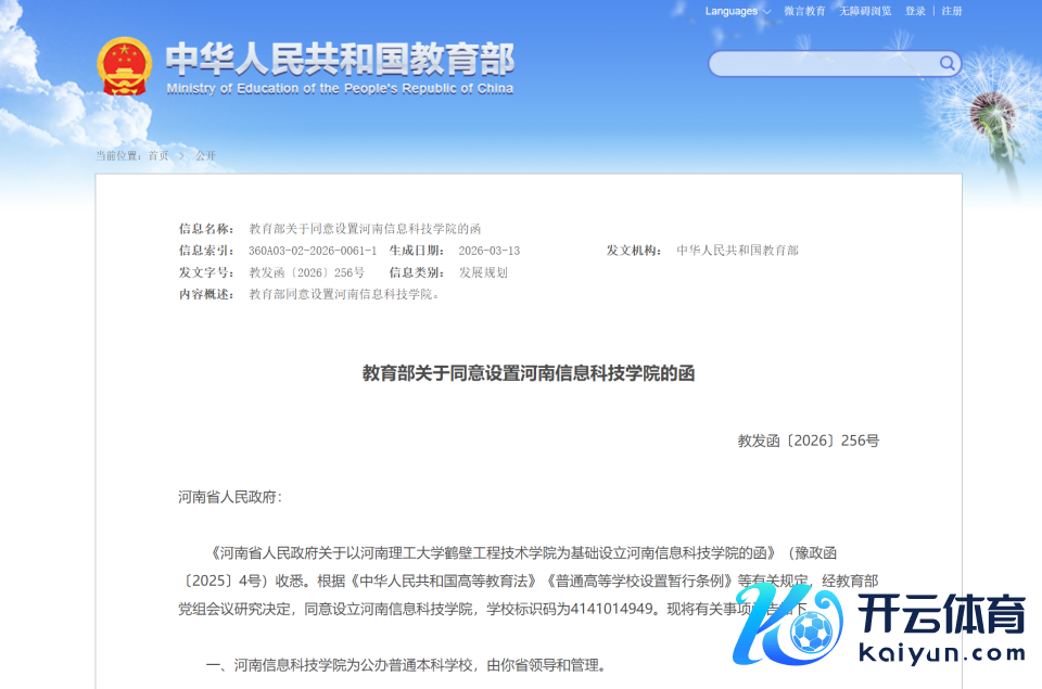 近日,表示部发布《对于欢喜成立河南信息科技学院的函》。把柄《中华东说念主民共和国高档表示法》《平日高档学校成立暂行条例》等关系轨则,欢喜以河南理工大学鹤壁工程时候学院为基础,确立河南信息科技学院。