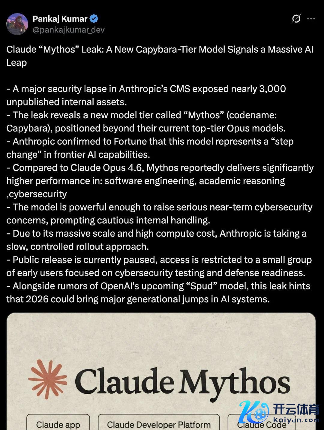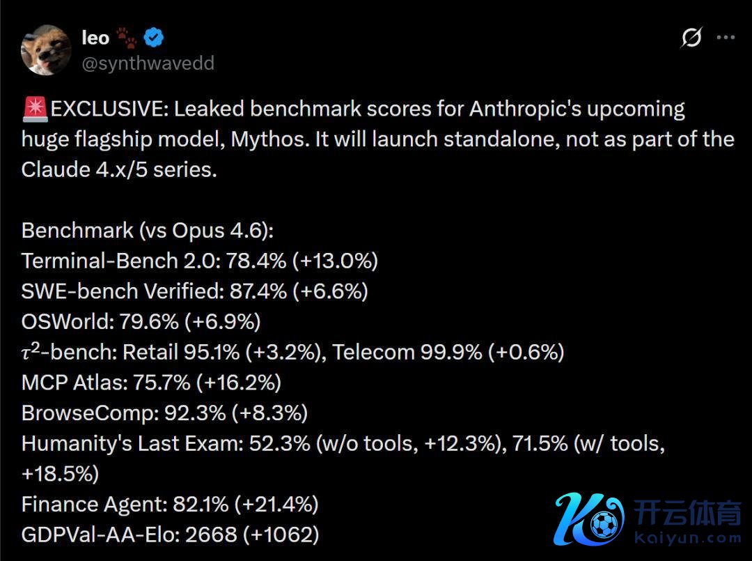 就在刚刚,Anthropic疑似下一代旗舰重磅旗舰模子Mythos的基准测试跑分,又又又表示了。