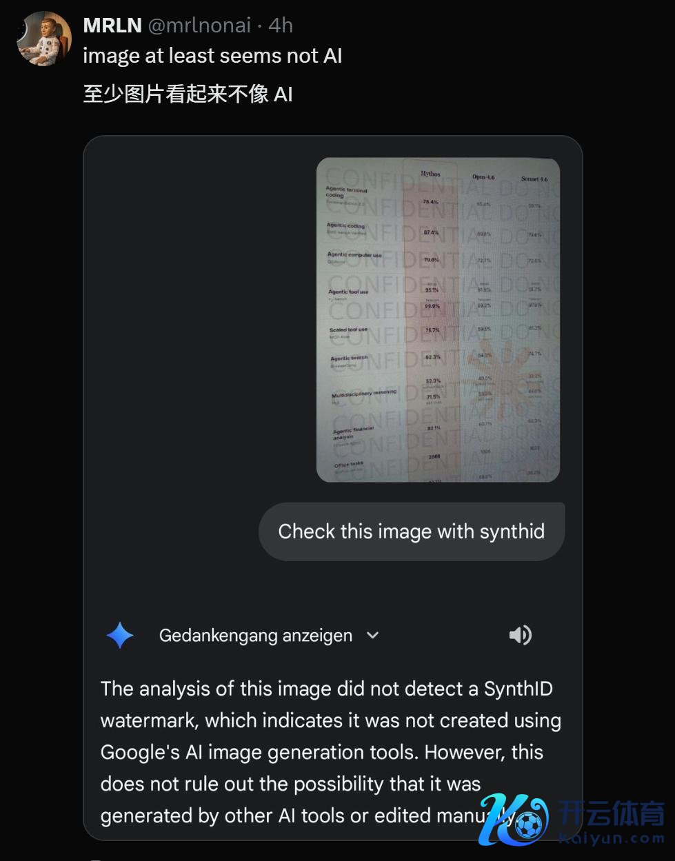 有东谈主特地用谷歌的AI内容水印时间synthid验了一下这张图,约略率不是AI生成的。