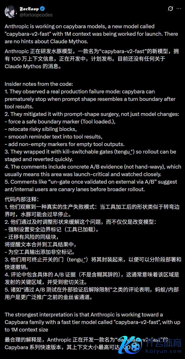 不同于环球揣度的Mythos(面前尚无实据),代码中明确指向了名为capybara-v2-fast的新模子。