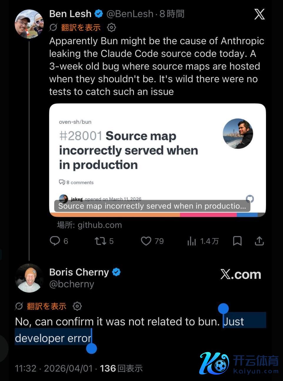 Claude Code之父Boris Cherny也否定了这是由于bun的问题,只是跟浮光掠影说了一句,「只是设立者的造作」。
