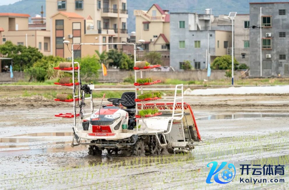 全市首个无东说念主聪慧农场落户封开。图为自动无东说念主插秧机。廖文奕 摄